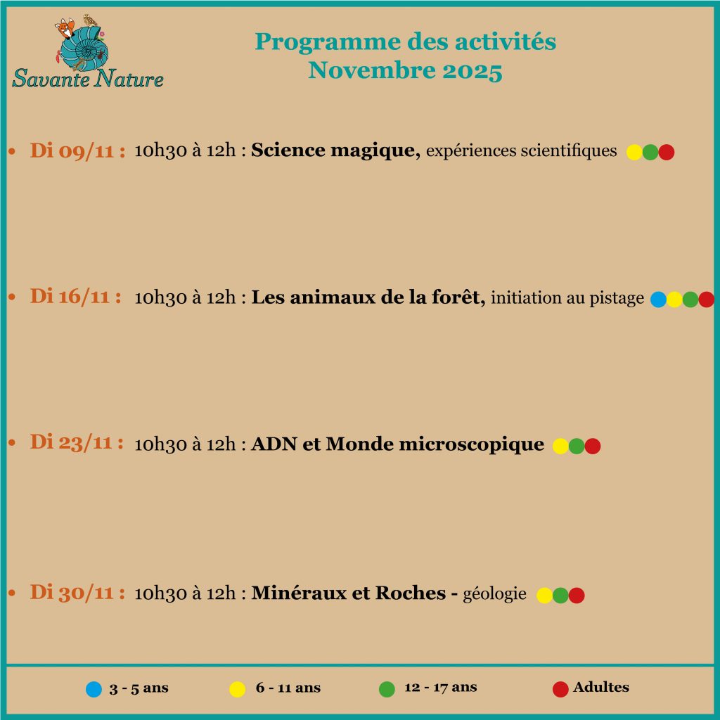 INSCRIPTION OBLIGATOIRE : Les places sont limitées à 10 personnes maximum par animation/sortie, et il est nécessaire d’avoir au moins 3 participants pour que l’activité soit maintenue.