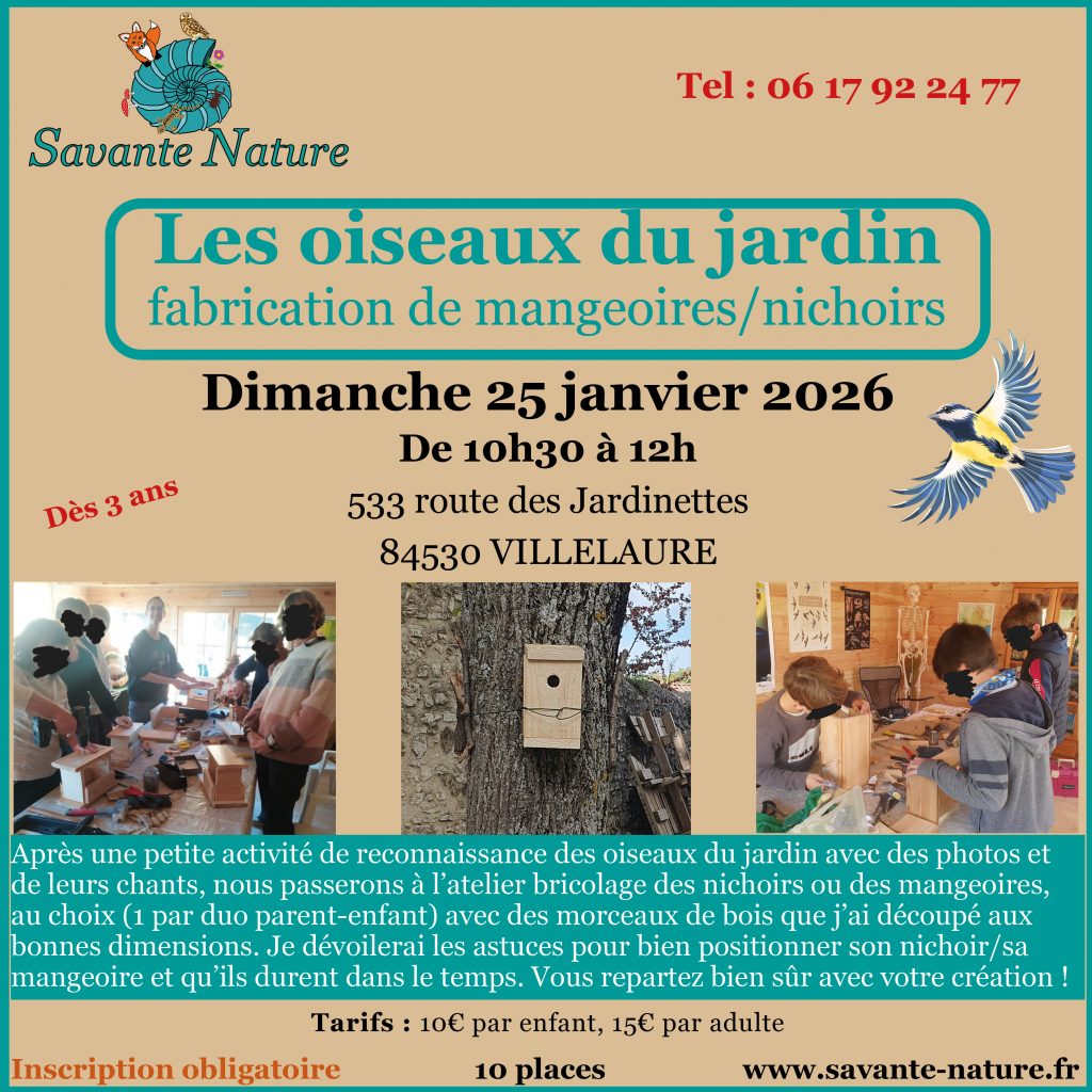 Inscriptions et renseignements auprès de Laurène MICHEL, par téléphone au 06 17 92 24 77 ou par mail à l’adresse suivante : laurene.michel@savante-nature.fr