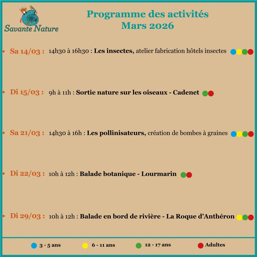 Laurène MICHEL, médiatrice scientifique diplômée, vous propose des animations collectives ludiques sur les sciences et la Nature, pour petits et grands, ainsi que des sorties naturalistes en Provence !